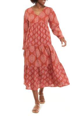 Wonderly Women S Drop Shoulder Printed V Neck Maxi Dress Belk